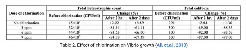 Ảnh hưởng của Clo đối với sự phát triển của Vibrio trong ao nuôi tôm