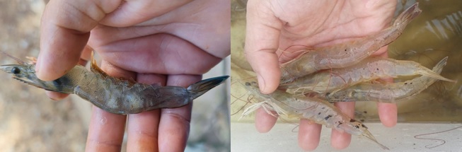 Tôm đâm nhau trong quá trình sang tôm (bên trái) và bị đốm đen (bên phải)