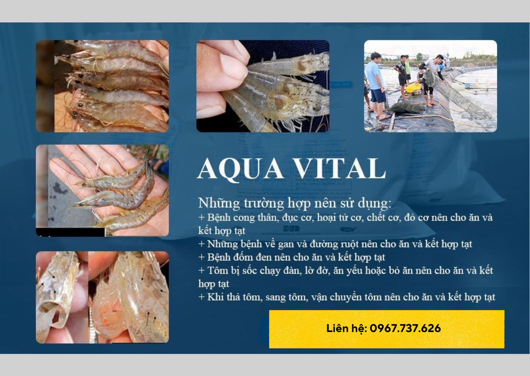 👉 Hãy liên hệ ngay đến hotline 0967.737.626 để biết thêm thông tin về AQUA VITAL và cách thức đặt hàng. Công ty Golden Crop luôn mang đến cho bạn những giải pháp tốt nhất để chăm sóc tốt nhất cho đàn tôm của bạn.