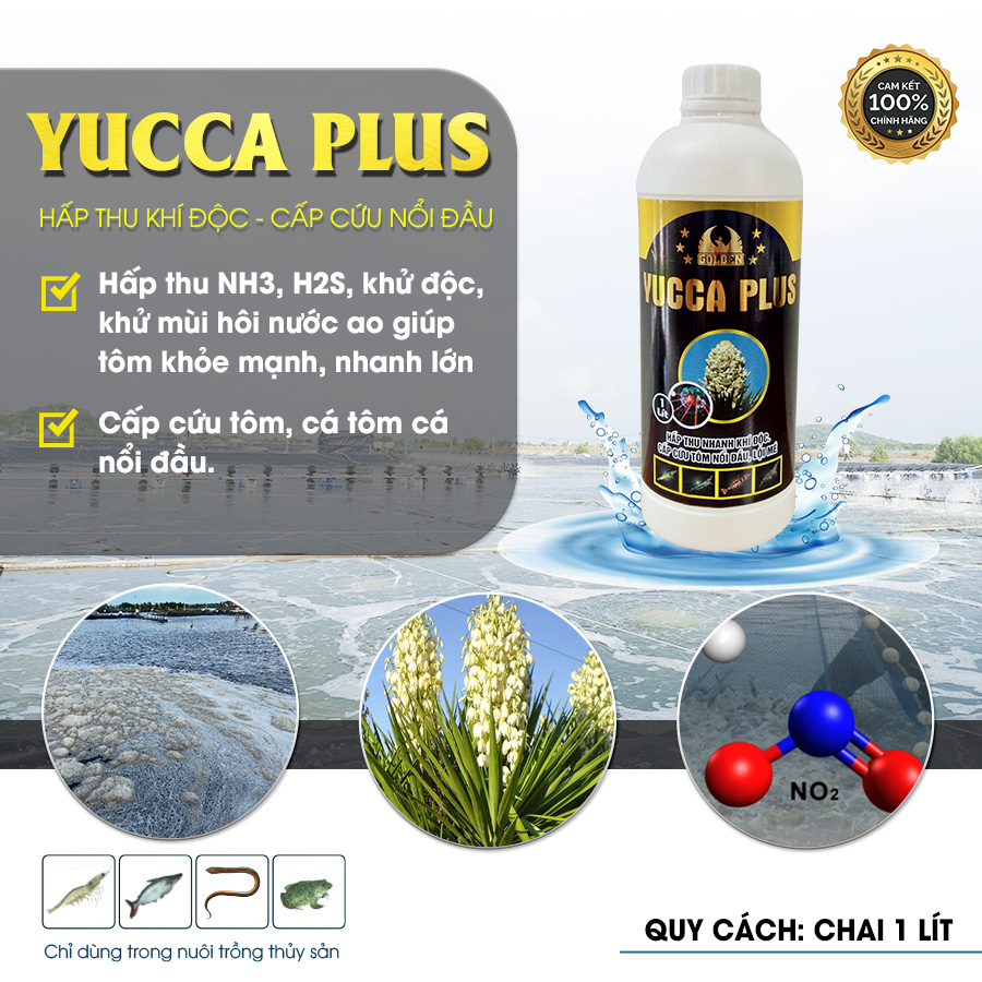 Một trong những biện pháp hữu hiệu người nuôi thường sử dụng là tạt YUCCA PLUS, sản phẩm YUCCA PLUS được sản xuất bởi công ty GOLDEN CROP với thành phần được chiết xuất từ yucca schidigera đã được sử dụng hiệu quả rộng rãi trong những trường hợp ao nuôi xuất hiện khí độc giúp chống sốc và bảo vệ tôm.