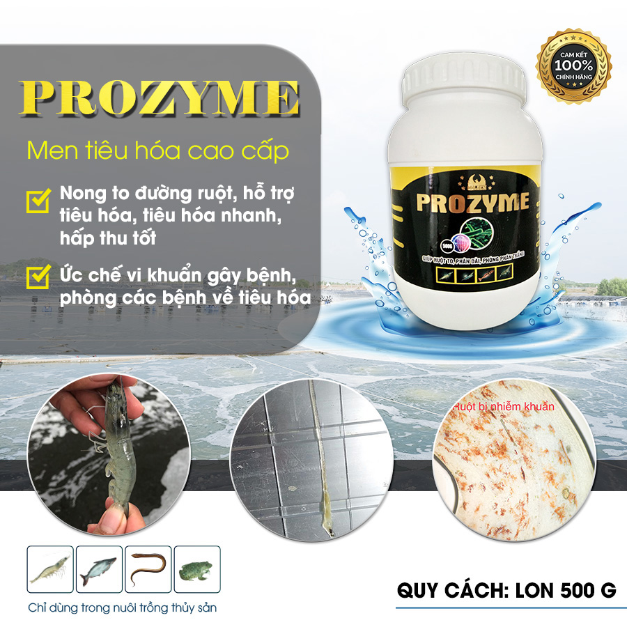 PROZYME giúp bổ sung men tiêu hóa có lợi với hàm lượng cao vào đường ruột tôm, giúp tôm tiêu hóa tốt, phòng ngừa các bệnh về đường ruột trên tôm hiệu quả.
